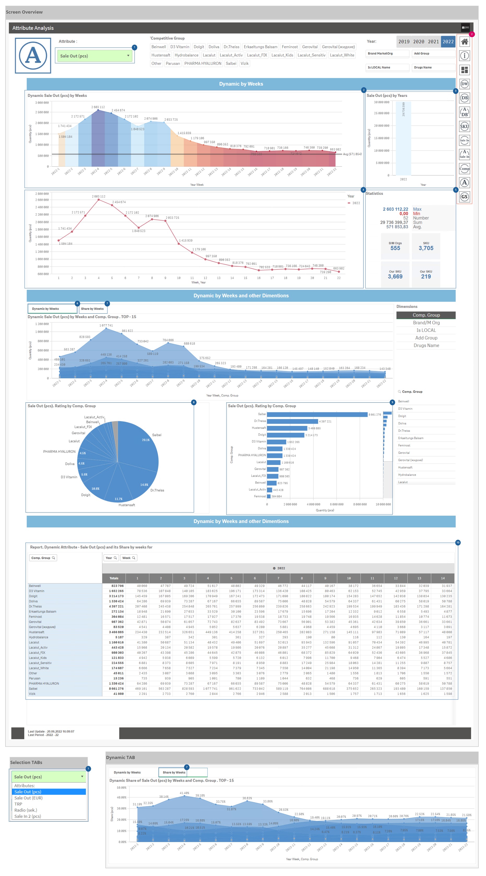 Dynamic of the Attribute by weeks & selected Analytical Dimension Tab